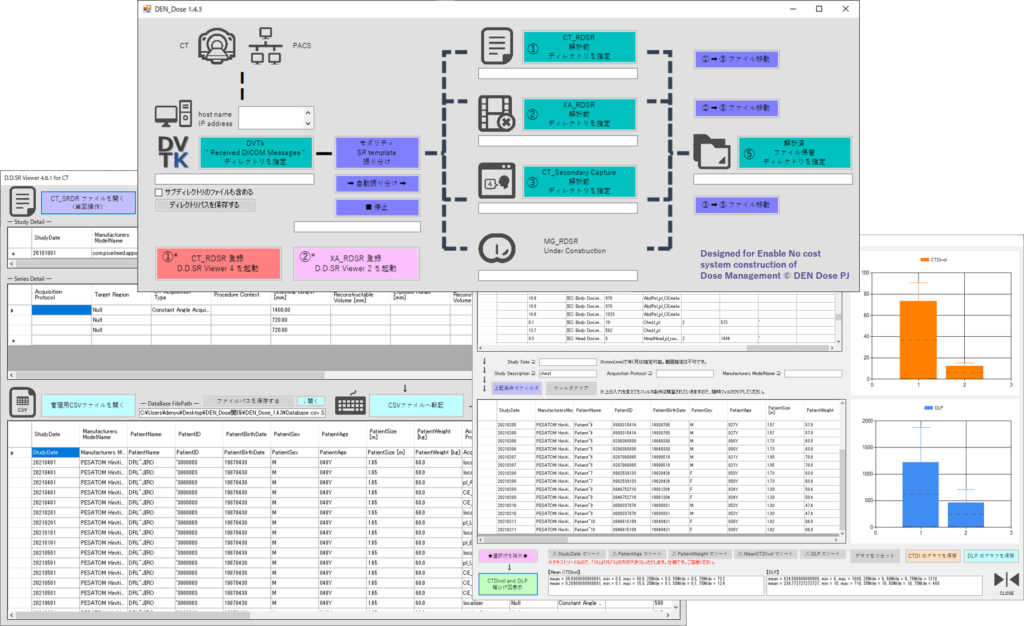 2020年5月より、「放射線線量構造化レポート:RDSR」を使用した放射線照射情報統合管理ソフトウェア『DEN Dose(Designed for Enable No cost system construction of Dose Management)』を公開し、2021年9月現在、40を超えるダウンロードを頂いております。