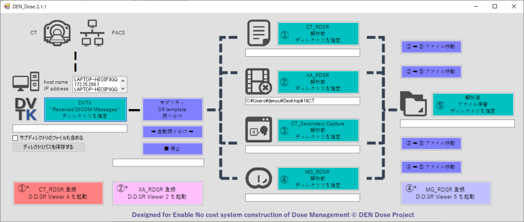 DICOM RDSRファイルやCT Secondary Captureファイルをモダリティコードに応じて解析用ディレクトリに再配布します。