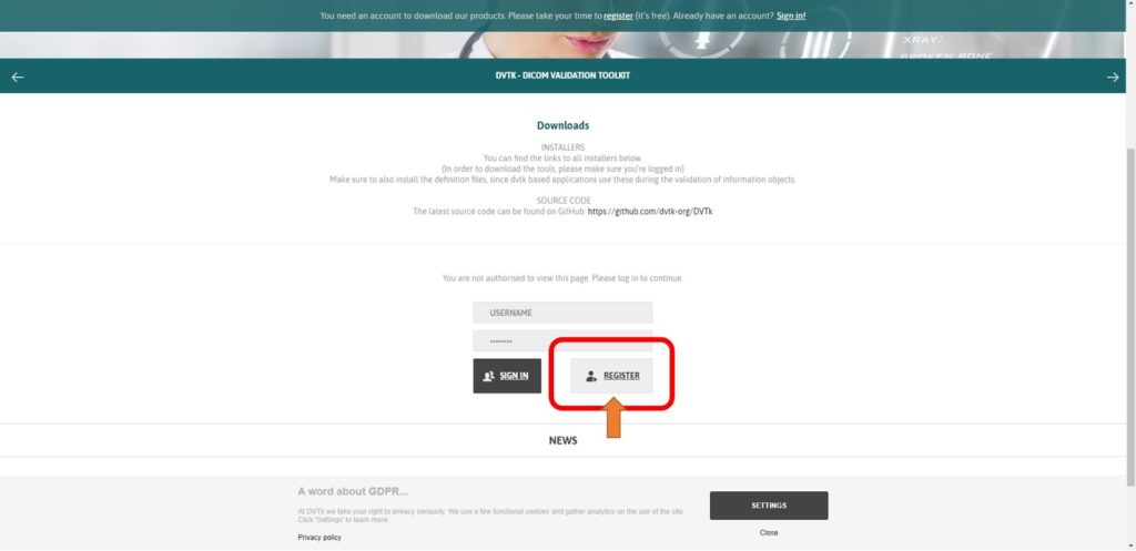 DVTkの各ツールをダウンロードするには、ユーザ登録が必要になります。